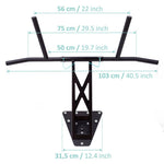 A pull-up bar and dip bar combined in one unique product.