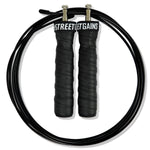 Das StreetGains Speed Rope Survival fällt sofort durch sein dickes Kabel auf. Das Kabel hat einen Durchmesser von 3,5 Millimetern und bietet dadurch mehr Widerstand als vergleichbare Speed Ropes. Das Survival Speed Rope eignet sich daher besonders für Sportler, die ein Springseil mit mehr Widerstand suchen. Darüber hinaus gibt das Fitness-Springseil dem Sportler mehr Feedback und Gefühl. Damit ist es auch ideal für Anfänger. Das Stahlseil ist mit einer hochwertigen schwarzen Beschichtung versehen. Diese Beschichtung schützt das Seil vor Abnutzung. Mit den beiden Einstellschrauben lässt sich das drei Meter lange Kabel ganz nach Wunsch einstellen. Dank des 360°-Drehsystems mit Kugellagern dreht sich das Survival geschmeidig und blitzschnell. Die Griffe sind mit rutschfestem Material überzogen, um mehr Halt und Komfort zu bieten.