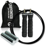 Corde à sauter lestée avec poids amovibles pour plus d'intensité, roulements à billes fluides et câble épais réglable.