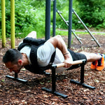 De parallettes zijn voorzien van antislip voetsteunen. Dankzij deze rubberen pads staan de parallettes stevig en stabiel op iedere ondergrond.