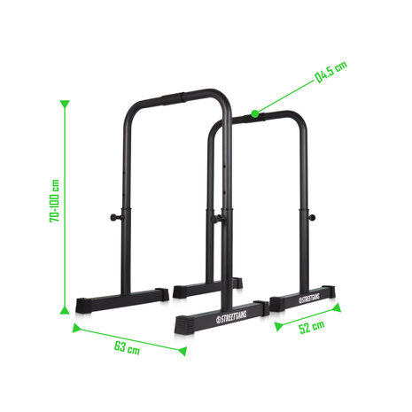 Set consists of two reliable parallettes powder coated in the color glossy black.